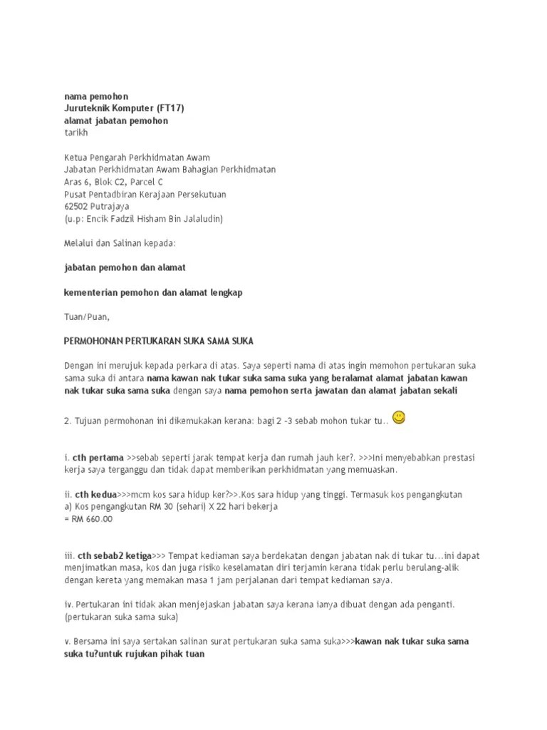 Contoh Surat Rasmi Permohonan Pertukaran - Surat Pertukaran Tempat Kerja Surat Pertukaran Tempat Dan Tanggal Tempat Dan Tanggal Ditempatkan Di Pojok Kanan Atas Tanpa Titik Di Akhir Karena Bukan Merupakan Suatu Kalimat Burberrystore Manhattanss : Aug 07, 2019 · kumpulan gambar contoh surat rasmi maklum balas yang baik 2019.. Contoh surat tunjuk sebab lewat hantar tuntutan have an image associated with the other.contoh surat tunjuk sebab lewat hantar tuntutan in addition, it will include a picture of a kind that may be seen in the gallery of contoh surat tunjuk sebab … Dec 06, 2021 · kuala lumpur: Jan 11, 2012 · contoh surat permohonan pertukaran tempat kerja. Surat kiriman terbahagi kepada 2 iaitu surat kiriman rasmi dan tidak rasmi. Memohon pertukaran tempat kerja boleh menjadi satu tugas yang sukar jika permohonan tersebut ditolak.